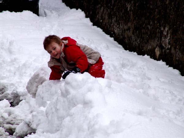 DSC03665 Thomas playing in the snow on the lakeside in Villeneuve (VD, Switzerland) |