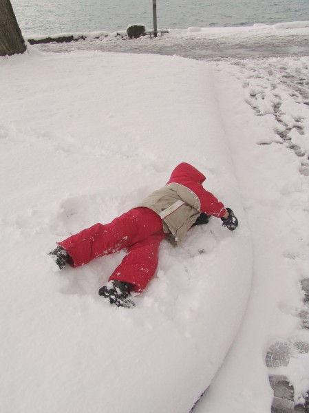 DSC03682 Thomas playing in the snow on the lakeside in Villeneuve (VD, Switzerland) |