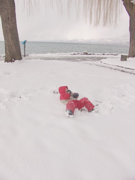 DSC03688 Thomas playing in the snow on the lakeside in Villeneuve (VD, Switzerland) |