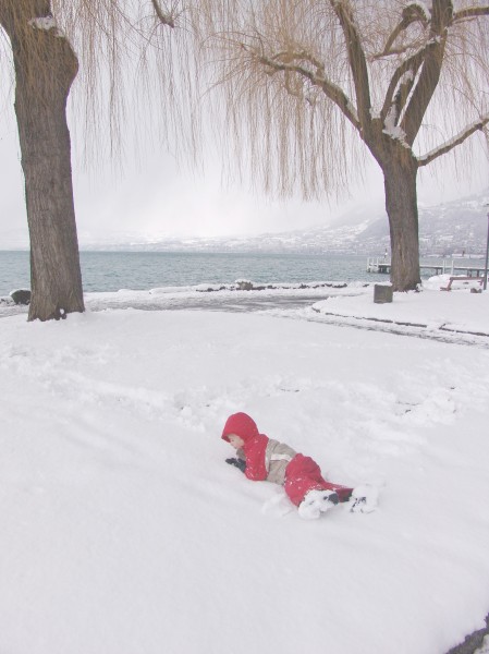 DSC03690 Thomas playing in the snow on the lakeside in Villeneuve (VD, Switzerland) |