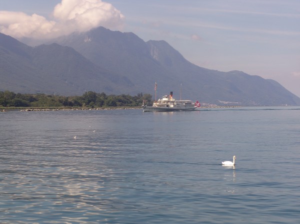 DSC06513 Lac Leman Geneva Lake Switzerland - views from Villeneuve - passenger ferry boat wild birds |